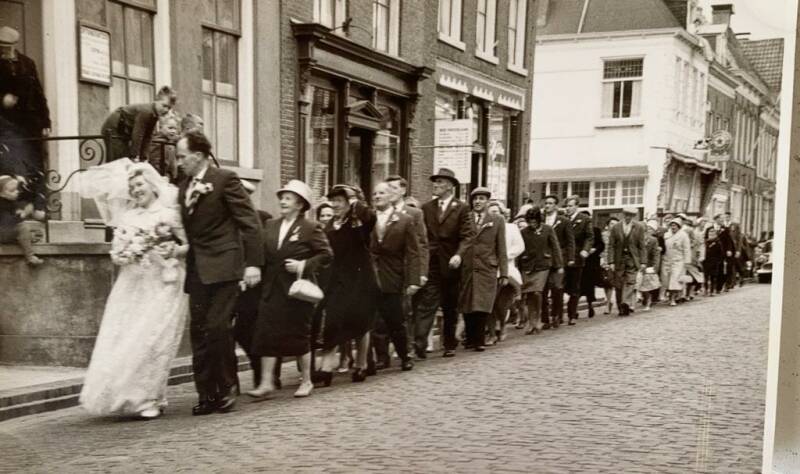Huwelijk van Jannie Bosman (1933-2004) en Hein Jansen (1927-2006) dit was op 29 maart 1961 toen de gehele stoet zich door de stad Elburg vanaf de stadsboerderij van haar Vader en Moeder aan de Gasthuissteeg richting het klooster waar een trouw locatie zat. Iemand vertelde ons dat Jannie en Hein geweldige lieve mensen waren.