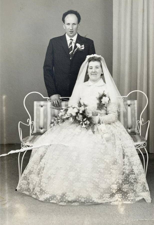Dit is de trouwfoto van Hein Jansen en Jannie Bosman gemaakt in Elburg op 29 maart 1961.