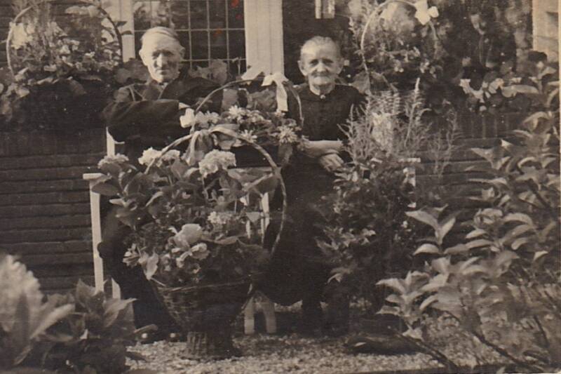 Op de foto staan Opa Aart Bosman (1873-1974) samen met zijn vouw Willemina 1876-1956, Deze foto werd gemaakt op hun diamanten bruiloft dit was 30 mei 1955 toen waren ze 60 jaar getrouwd, Aart en Willemina waren op 17 mei 1895 in ondertrouw gegaan om vervolgens 30 mei 1895 te trouwen met elkaar. Hieronder de aankondiging in de krant van hun Huwelijk.
