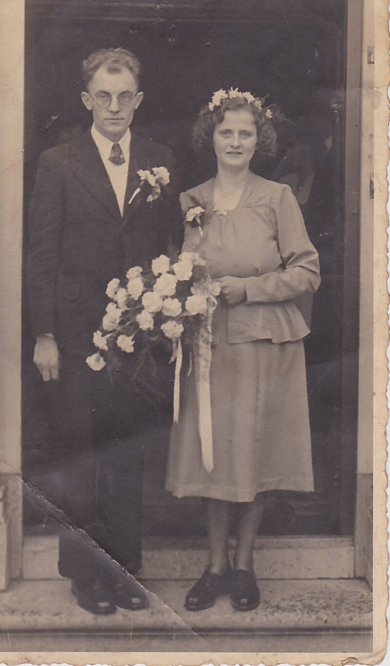 Met hieronder nog de trouwfoto van Willem Klouth 1923-1989 en Woltertje van Dragt 1928-1983
